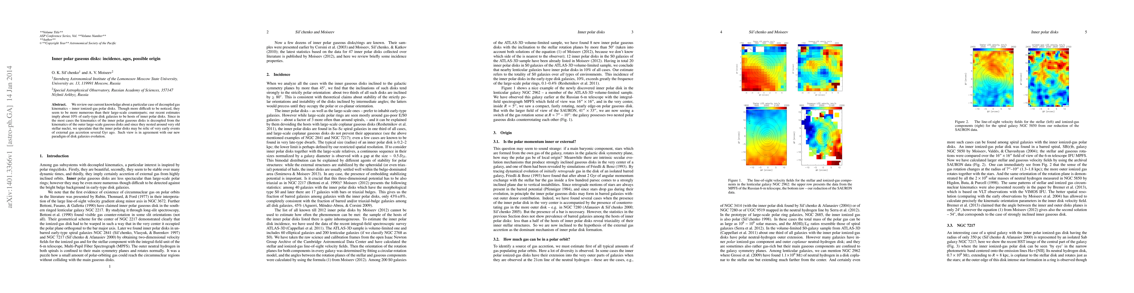 We review our current knowledge about a particular case of decoupled gas kinematics -- inner ionized-gas polar disks. Though more difficult to be noticed, they seem to be more numerous than their large-scale counterparts; our recent estimates imply about 10 per cent of early-type disk galaxies to be hosts of inner polar disks. Since in the most cases the kinematics of the inner polar gaseous disks is decoupled from the kinematics of the outer large-scale gaseous disks and since they nested around very old stellar nuclei, we speculate that the inner polar disks may be relics of very early events of external gas accretion several Gyr ago. Such view is in agreement with our new paradigm of the disk galaxies evolution.