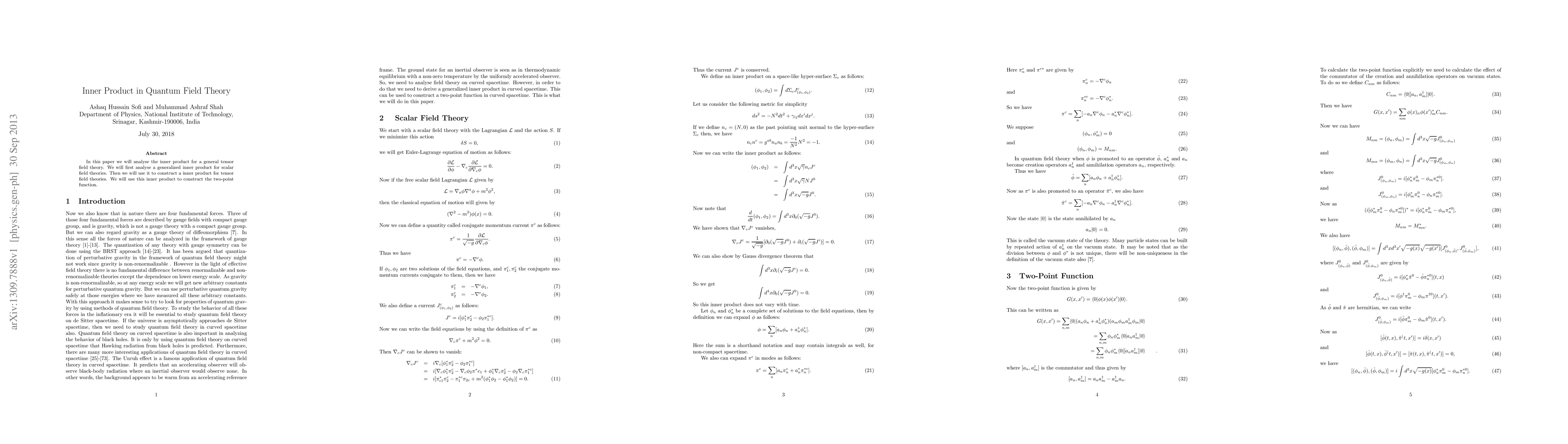 This paper analyzes a generalized inner product for scalar field theories and extends it to construct an inner product for tensor field theories, ultimately using it to build the two-point function in quantum field theory.