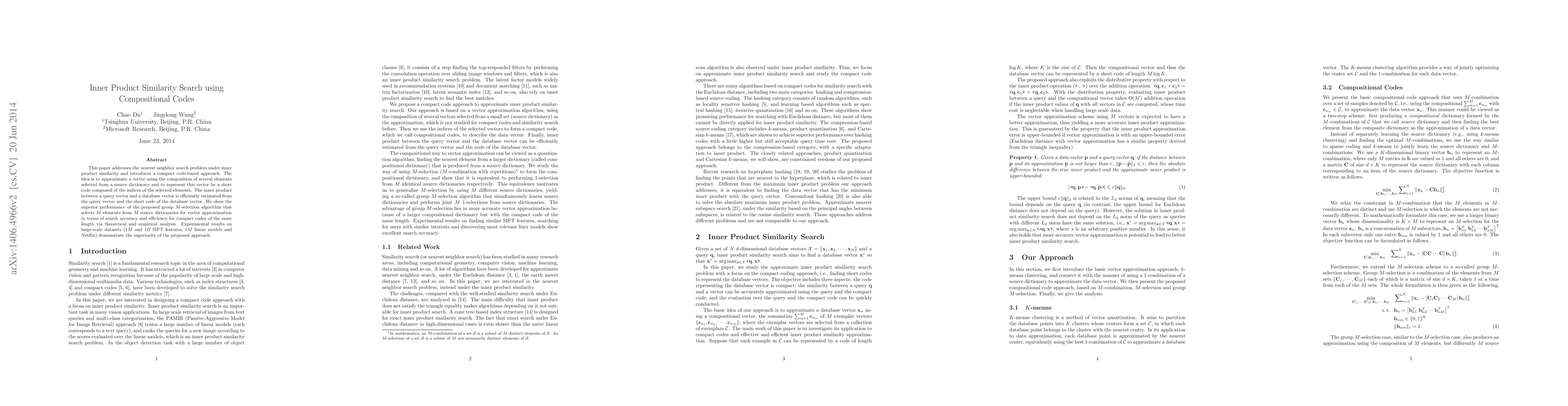 This paper introduces a compact code-based approach for nearest neighbor search under inner product similarity, achieving superior performance in terms of accuracy and efficiency.