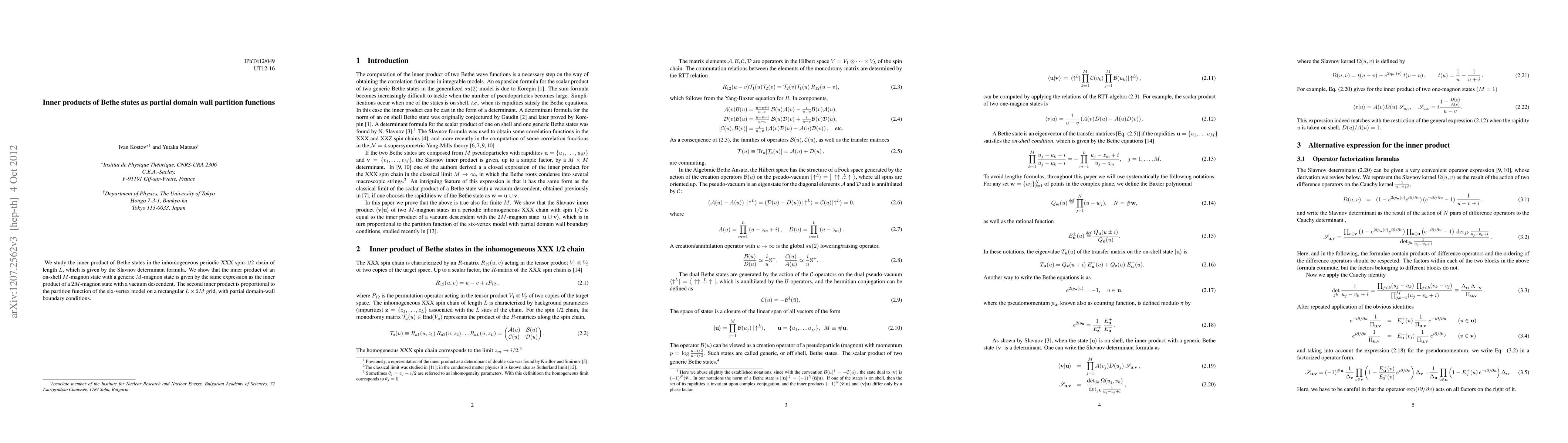 We study the inner product of Bethe states in the inhomogeneous periodic XXX spin-1/2 chain of length L, which is given by the Slavnov determinant formula. We show that the inner product of an on-shell M-magnon state with a generic M-magnon state is given by the same expression as the inner product of a 2M-magnon state with a vacuum descendent. The second inner product is proportional to the partition function of the six-vertex model on a rectangular Lx2M grid, with partial domain-wall boundary conditions.