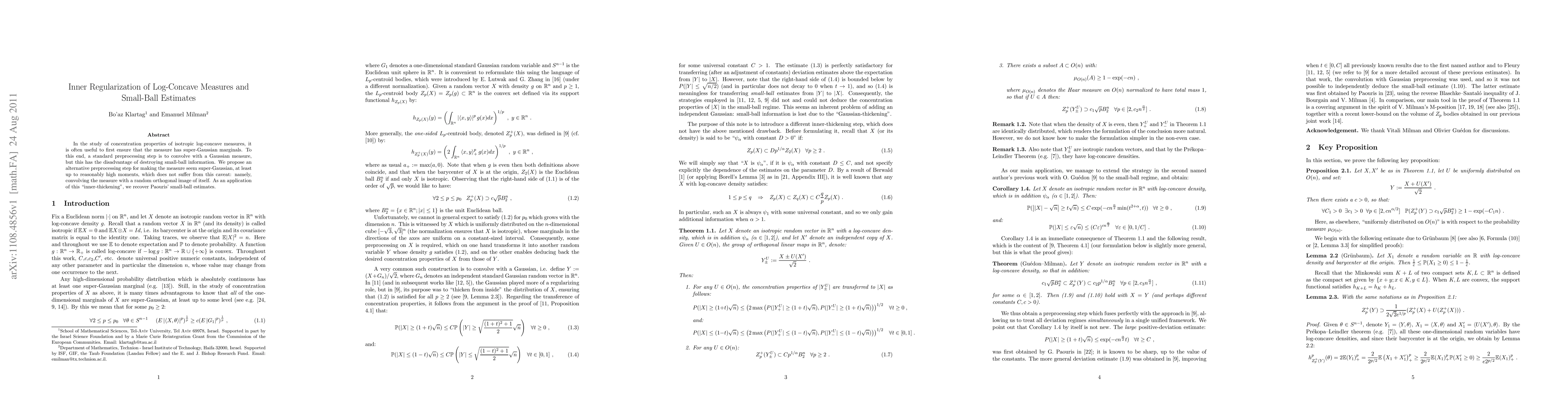 Researchers propose a new preprocessing step to make log-concave measures seem super-Gaussian without destroying small-ball information, enabling accurate estimates of concentration properties.