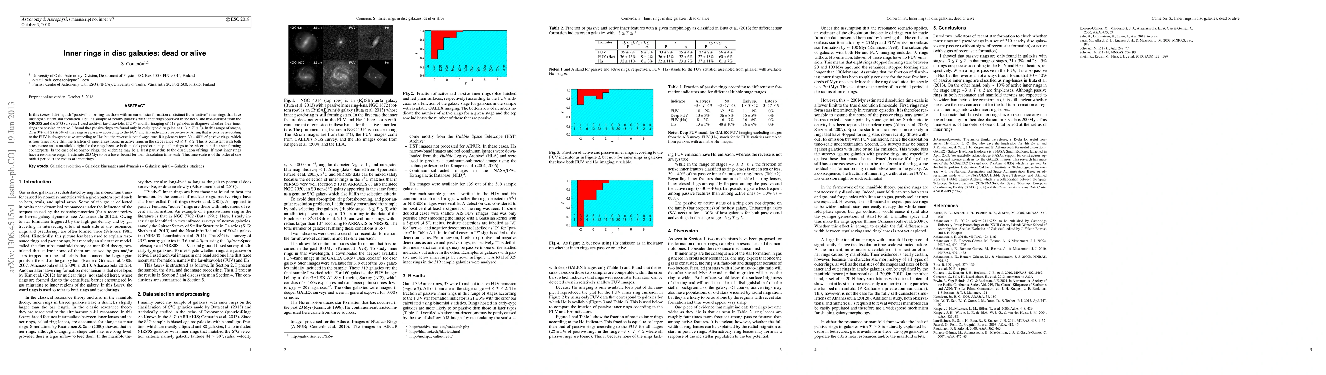 In this Letter, I distinguish "passive" inner rings as those with no current star formation, as distinct from "active" inner rings that have undergone recent star formation. I built a sample of nearby galaxies with inner rings observed in the near- and mid-infrared from the NIRS0S and the S4G surveys. I used archival far-ultraviolet (FUV) and H\alpha\ imaging of 319 galaxies to diagnose whether their inner rings are passive or active. I found that passive rings are found only in early-type disc galaxies (-3<=T<=2). In this range of stages, 21+-3% and 28+-5% of the rings are passive according to the FUV and H\alpha\ indicators, respectively. A ring that is passive according to the FUV is always passive according to H\alpha, but the reverse is not always true. Ring-lenses form 30-40% of passive rings, which is four times more than the fraction of ring-lenses found in active rings in the stage range -3<=T<=2. This is consistent with both a resonance and a manifold origin for the rings because both models predict purely stellar rings to be wider than their star-forming counterparts. In the case of resonance rings, the widening may be at least partly due to the dissolution of rings. If most inner rings have a resonance origin, I estimate 200Myr to be a lower bound for their dissolution time-scale. This time-scale is of the order of one orbital period at the radius of inner rings.