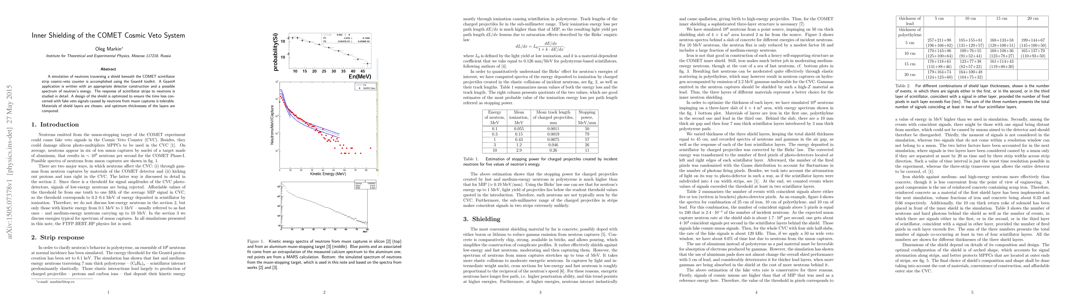 This research uses Geant4 simulations to study neutron behavior in COMET's cosmic veto system. It optimizes shield design to minimize fake veto signals from neutrons, selecting optimal materials and thicknesses for shield layers.