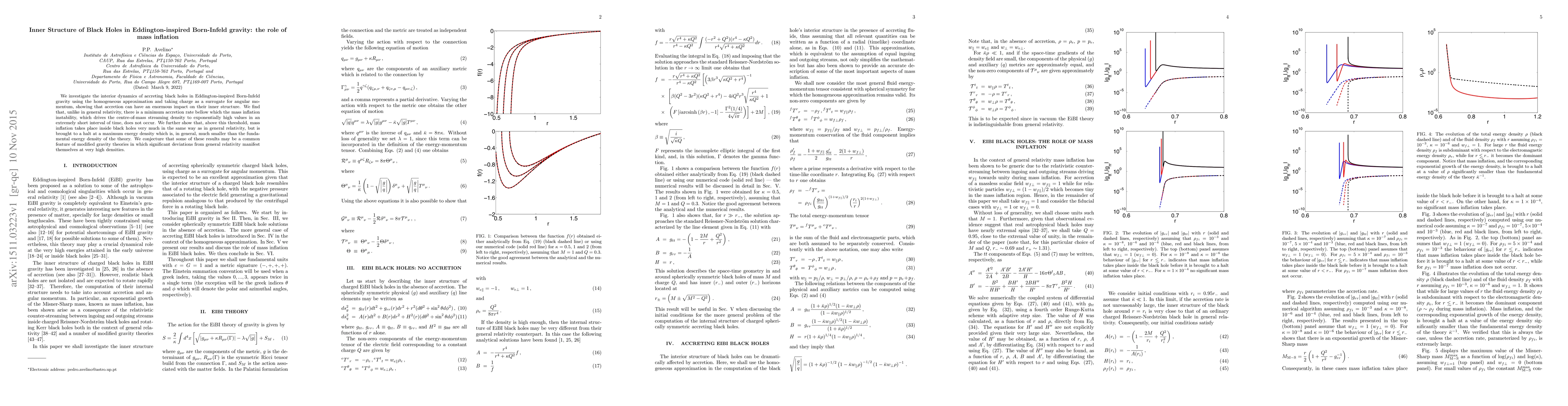 This paper explores the inner dynamics of accreting black holes in Eddington-inspired Born-Infeld gravity, revealing that mass inflation occurs above a minimum accretion rate and is capped at a lower energy density compared to general relativity, suggesting modified gravity's influence at high densities.