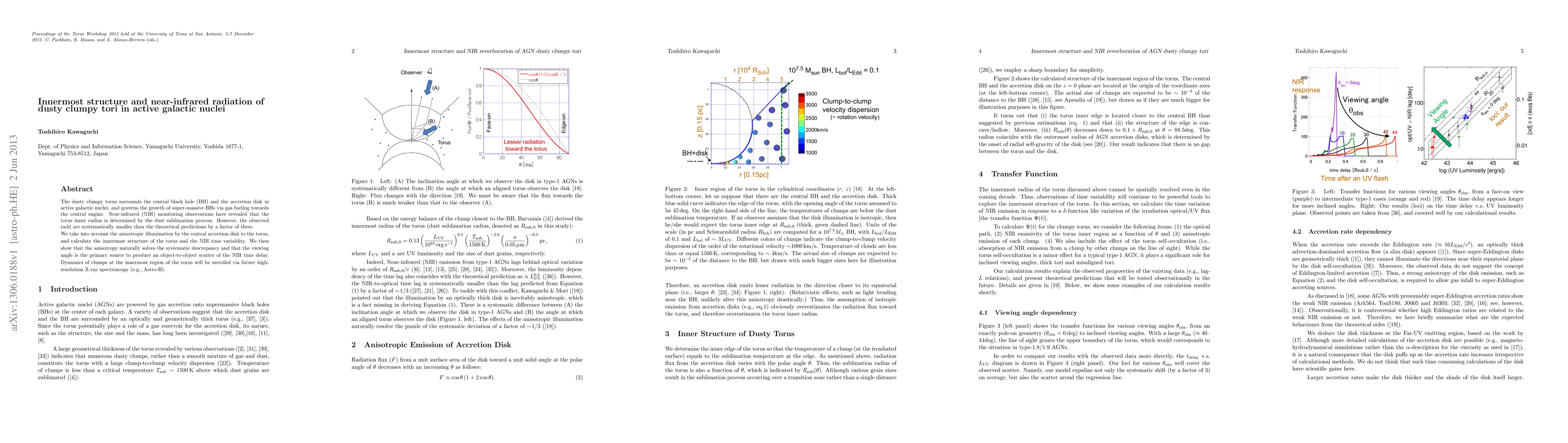 This paper investigates the innermost structure of dusty clumpy tori in active galactic nuclei, revealing that anisotropic illumination from the central accretion disk resolves discrepancies in the torus's inner radius. The study also highlights the viewing angle as a key factor in the scatter of near-infrared time delays, with future high-resolution X-ray spectroscopy promising further insights into clump dynamics.