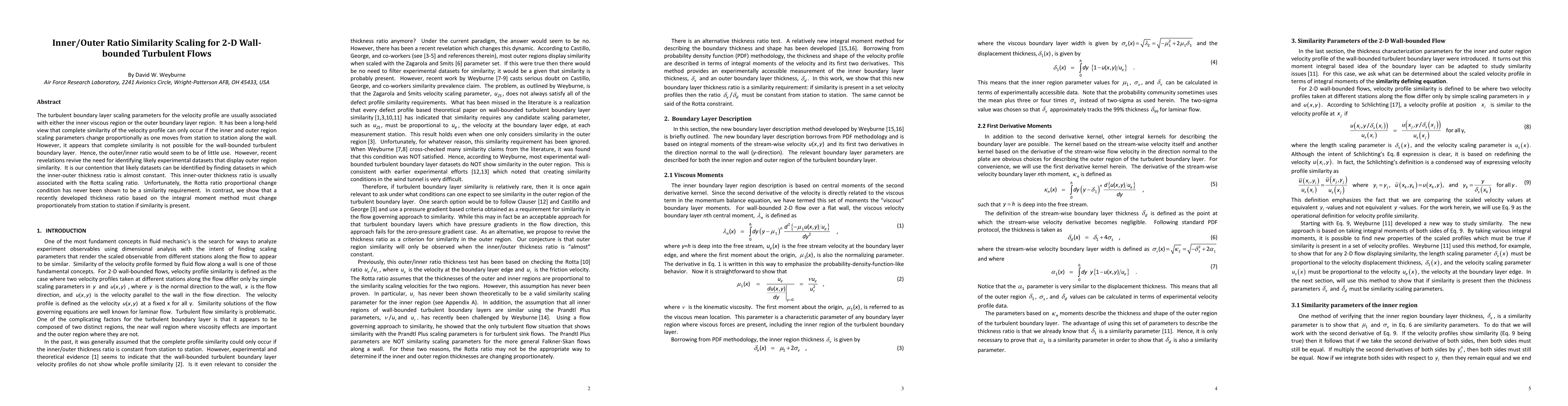 The turbulent boundary layer scaling parameters for the velocity profile are usually associated with either the inner viscous region or the outer boundary layer region. It has been a long-held view that complete similarity of the velocity profile can only occur if the inner and outer region scaling parameters change proportionally as one moves from station to station along the wall. However, it appears that complete similarity is not possible for the wall-bounded turbulent boundary layer. Hence, the outer/inner ratio would seem to be of little use. However, recent revelations revive the need for identifying likely experimental datasets that display outer region similarity. It is our contention that likely datasets can be identified by finding datasets in which the inner-outer thickness ratio is almost constant. This inner-outer thickness ratio is usually associated with the Rotta scaling ratio. Unfortunately, the Rotta ratio proportional change condition has never been shown to be a similarity requirement. In contrast, we show that a recently developed thickness ratio based on the integral moment method must change proportionately from station to station if similarity is present.