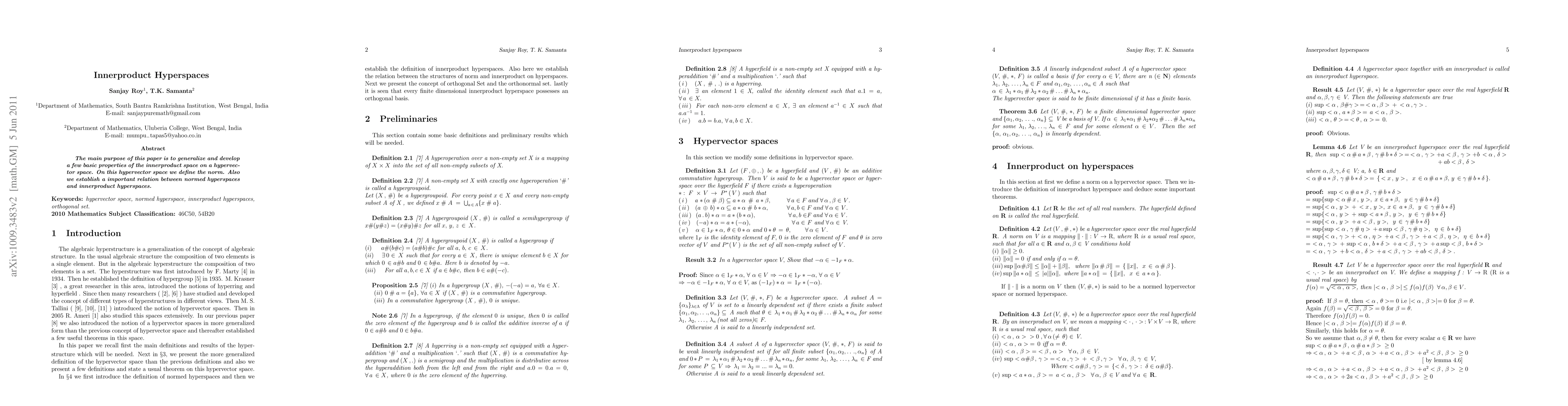 This paper generalizes innerproduct spaces to hypervector spaces, defining a norm and establishing a significant relationship between normed hyperspaces and innerproduct hyperspaces. The focus is on developing fundamental properties of these generalized innerproduct hyperspaces.