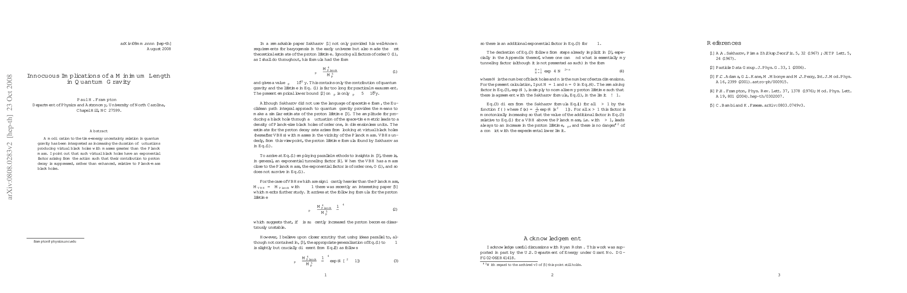 A modification to the time-energy uncertainty relation in quantum gravity has been interpreted as increasing the duration of fluctuations producing virtual black holes with masses greater than the Planck mass. I point out that such virtual black holes have an exponential factor arising from the action such that their contribution to proton decay is suppressed, rather than enhanced, relative to Planck-mass black holes.