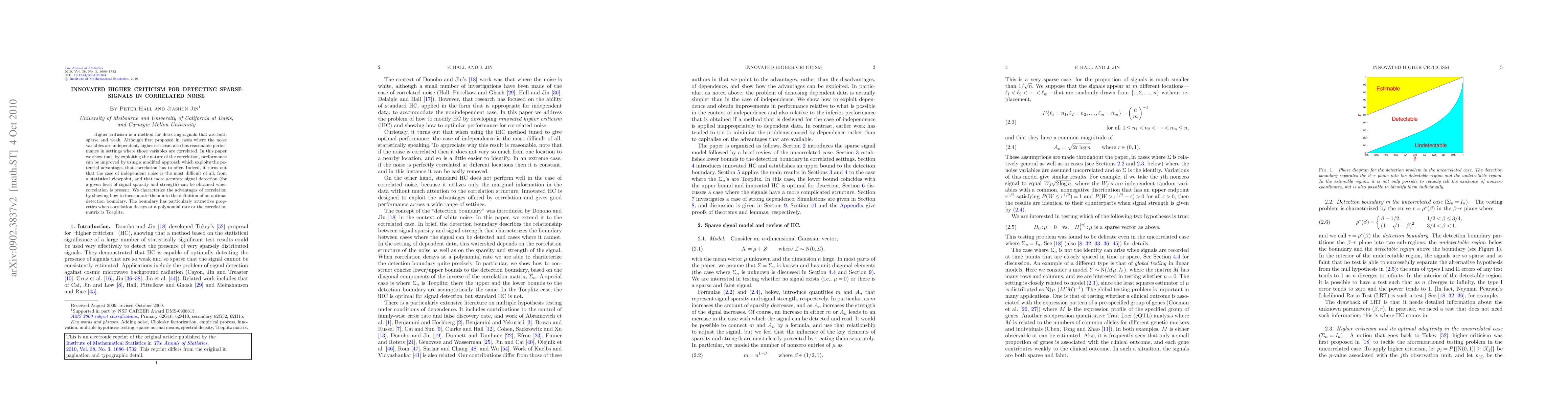 This paper proposes an improved version of higher criticism for detecting sparse signals in correlated noise, demonstrating that exploiting the correlation among noise variables can enhance detection accuracy compared to independent noise scenarios. The authors characterize the benefits of correlation and define an optimal detection boundary that performs better under specific correlation structures.