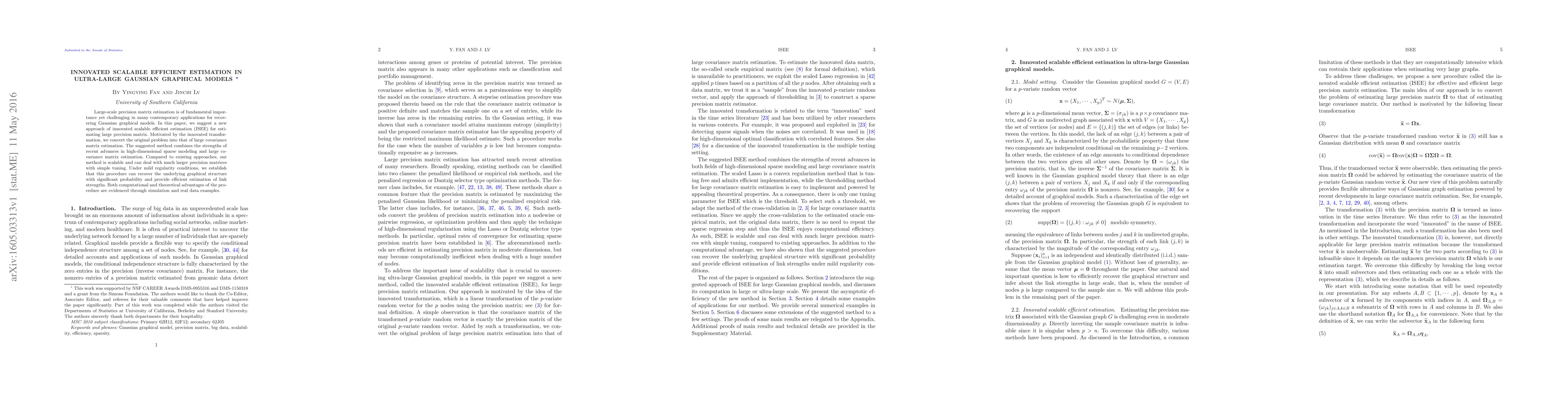 This paper proposes an Innovated Scalable Efficient Estimation (ISEE) method for large precision matrix estimation in Gaussian graphical models, transforming the problem into a large covariance matrix estimation task. The method leverages advances in sparse modeling and covariance estimation, offering scalability and improved accuracy, as demonstrated through simulations and real data examples.