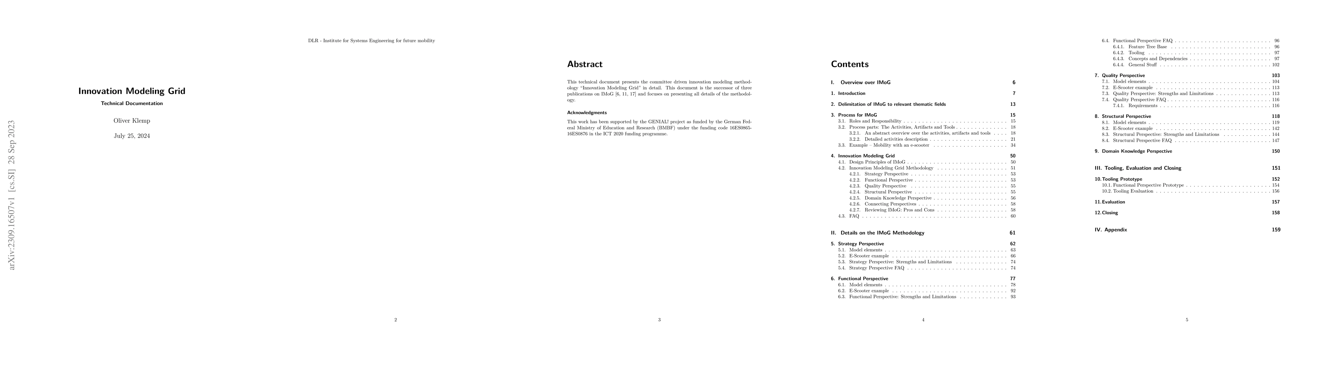 The paper introduces the Innovation Modeling Grid (IMoG), a committee-driven methodology for innovation modeling, detailed in a successor to previous publications on IMoG.