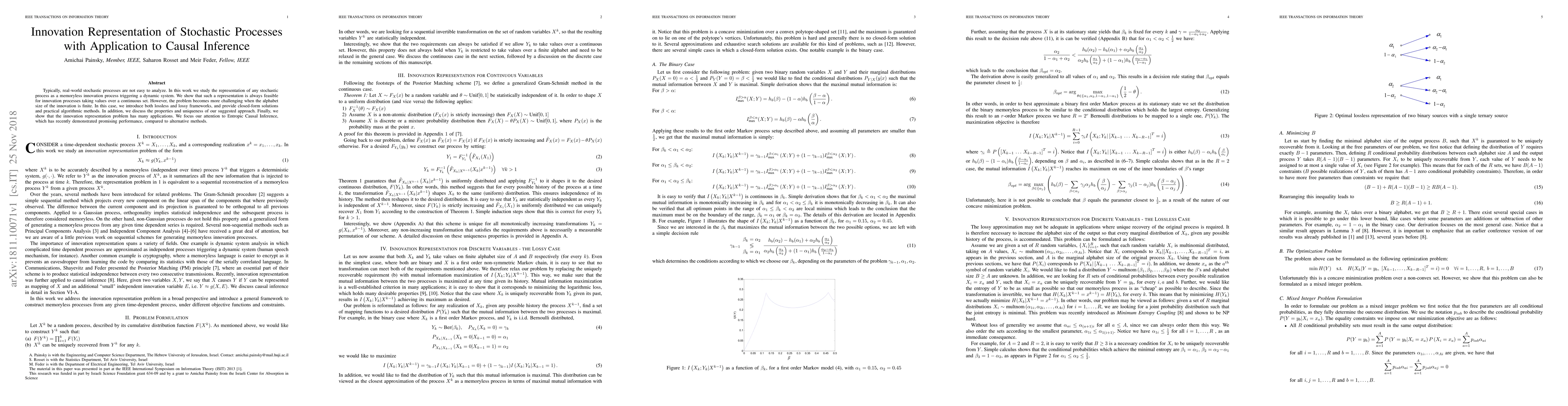Researchers develop a method to represent stochastic processes as memoryless innovation processes, enabling causal inference, with practical solutions for finite alphabet sizes.