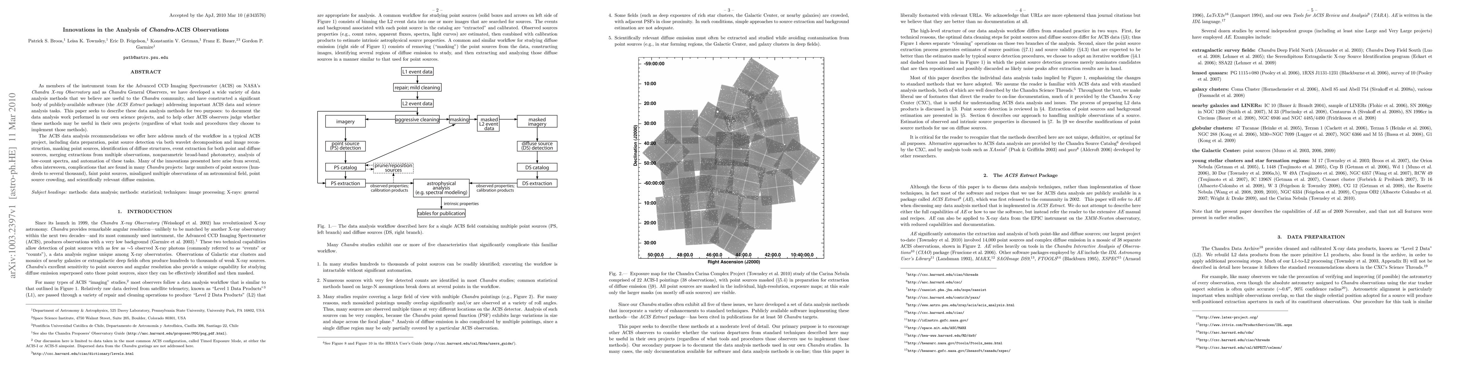 This paper details innovative data analysis methods for NASA's Chandra X-ray Observatory's ACIS instrument, addressing challenges like numerous point sources, faint sources, misaligned observations, and source crowding. It offers recommendations for tasks such as data preparation, point source detection, diffuse structure identification, and spectrum analysis, aiming to assist the Chandra community.