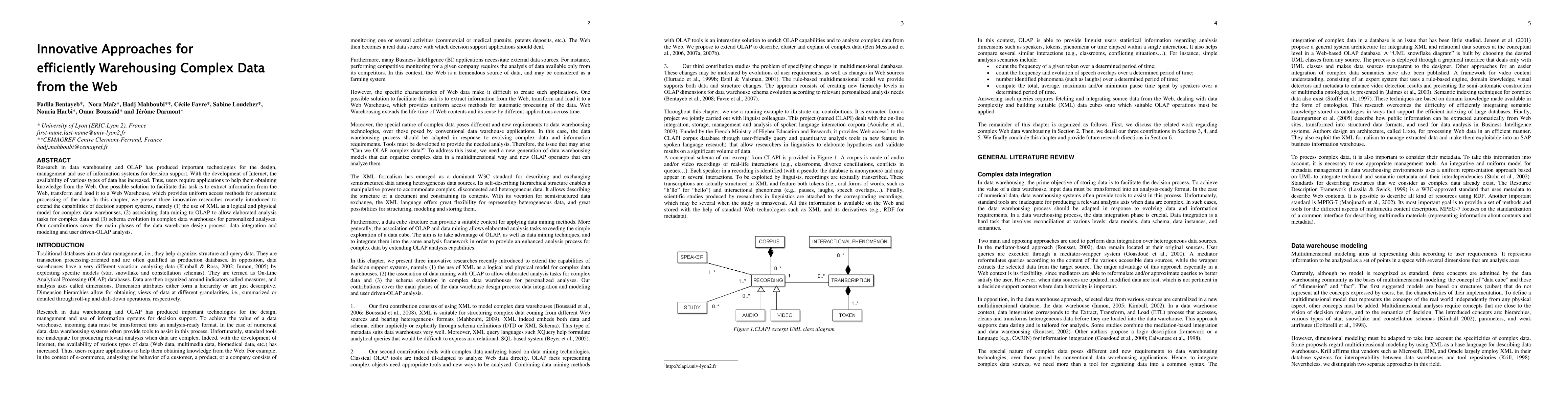 This paper explores innovative approaches for efficiently warehousing complex data from the web, focusing on three key research areas: XML modeling for data warehouses, data mining integration with OLAP for advanced analysis, and schema evolution for personalized data analysis. The research aims to enhance decision support systems through improved data integration and user-driven OLAP analysis.