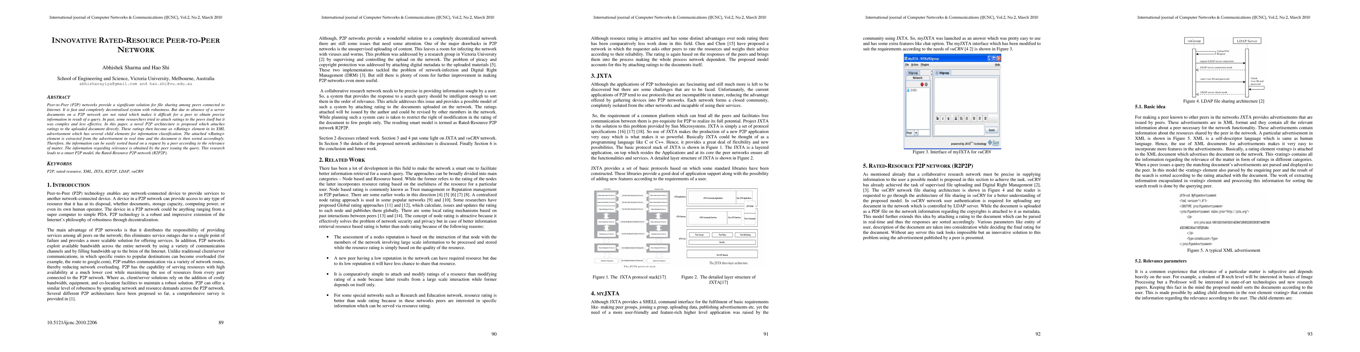 paper, a novel P2P architecture is proposed which attaches ratings to the