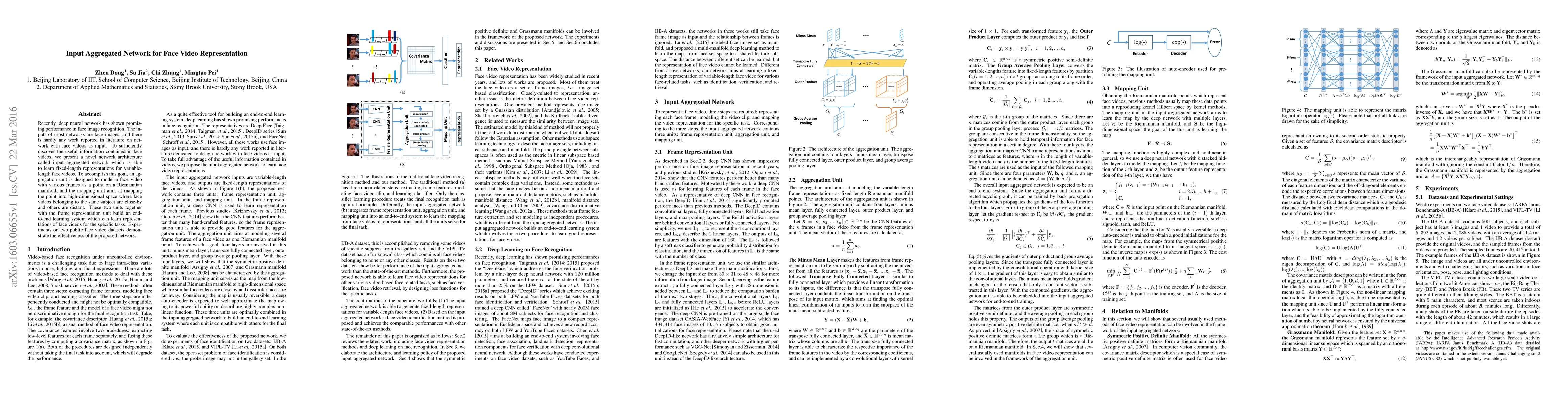 This paper introduces an input aggregated network to learn fixed-length representations for variable-length face videos, utilizing an aggregation unit and a mapping unit to model and represent face videos effectively. Experiments on public datasets show the network's effectiveness in face video representation tasks.