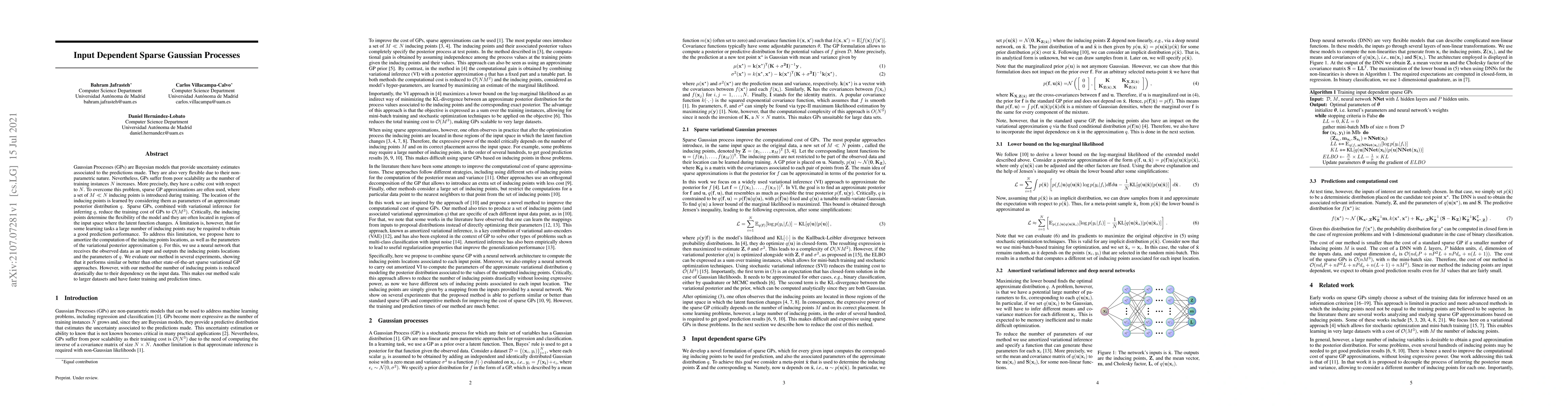 Gaussian Processes (GPs) are Bayesian models that provide uncertainty estimates associated to the predictions made. They are also very flexible due to their non-parametric nature. Nevertheless, GPs suffer from poor scalability as the number of training instances N increases. More precisely, they have a cubic cost with respect to $N$. To overcome this problem, sparse GP approximations are often used, where a set of $M \ll N$ inducing points is introduced during training. The location of the inducing points is learned by considering them as parameters of an approximate posterior distribution $q$. Sparse GPs, combined with variational inference for inferring $q$, reduce the training cost of GPs to $\mathcal{O}(M^3)$. Critically, the inducing points determine the flexibility of the model and they are often located in regions of the input space where the latent function changes. A limitation is, however, that for some learning tasks a large number of inducing points may be required to obtain a good prediction performance. To address this limitation, we propose here to amortize the computation of the inducing points locations, as well as the parameters of the variational posterior approximation q. For this, we use a neural network that receives the observed data as an input and outputs the inducing points locations and the parameters of $q$. We evaluate our method in several experiments, showing that it performs similar or better than other state-of-the-art sparse variational GP approaches. However, with our method the number of inducing points is reduced drastically due to their dependency on the input data. This makes our method scale to larger datasets and have faster training and prediction times.