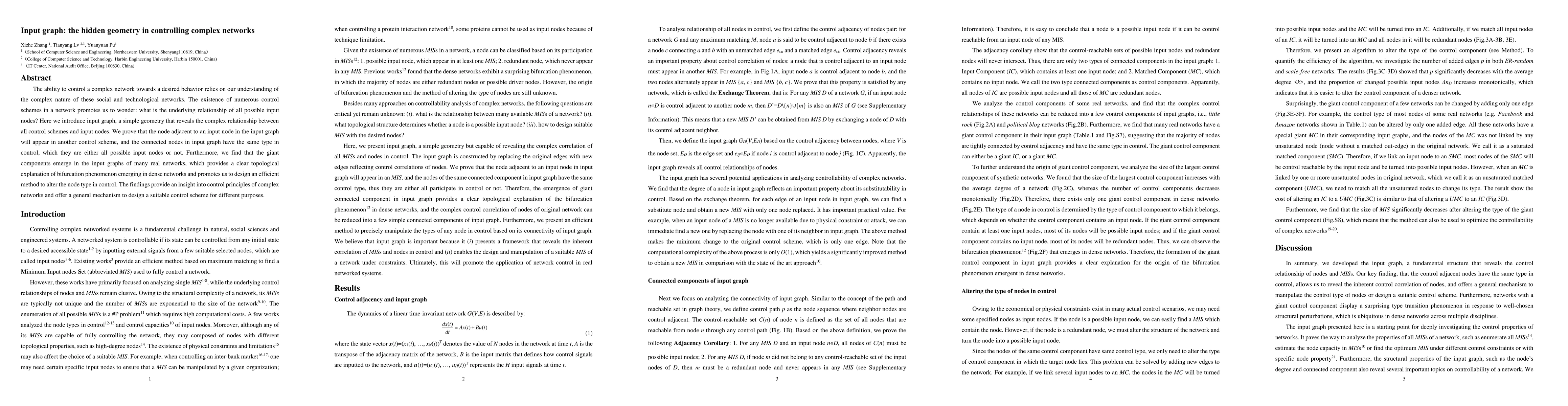 This paper introduces the concept of an "input graph" to elucidate the complex relationships between control schemes and input nodes in complex networks. It demonstrates that nodes in the input graph are interconnected in ways that reveal the underlying control principles, offering insights into designing efficient control strategies for various network behaviors.