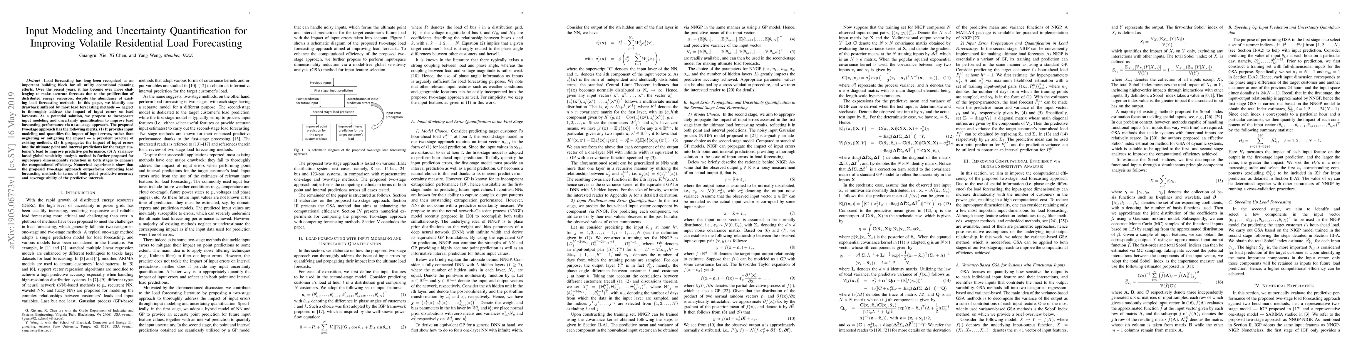 This paper proposes a two-stage approach to improve volatile residential load forecasting by incorporating input modeling and uncertainty quantification, addressing the impact of input errors, and employing a variance-based global sensitivity analysis for computational efficiency. The method outperforms existing methods in both point predictive accuracy and interval prediction coverage.