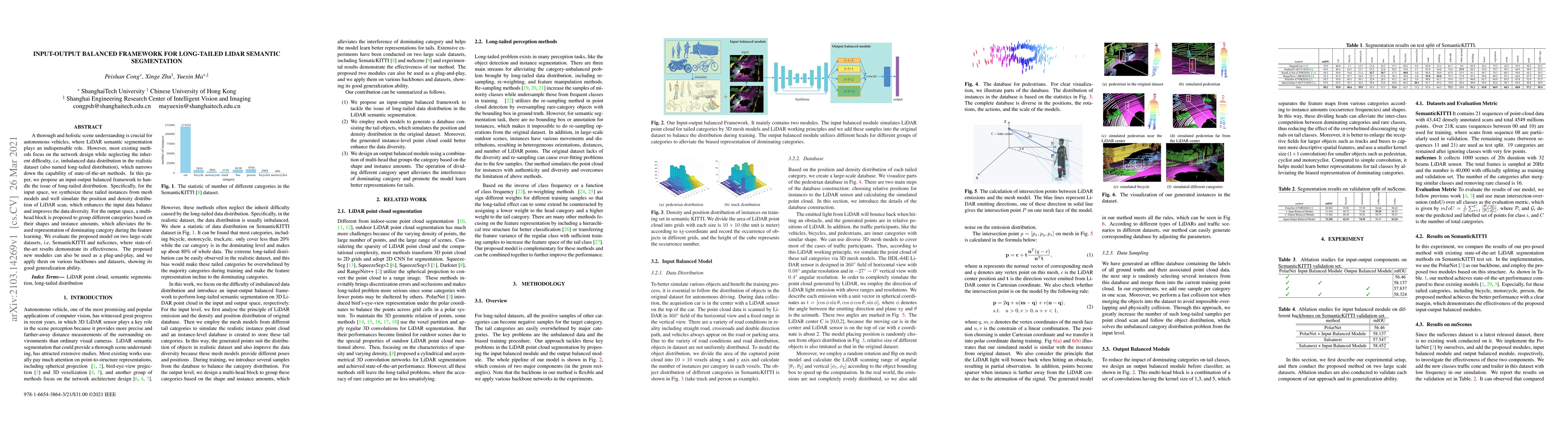 This paper proposes an input-output balanced framework to address the long-tailed data distribution issue in LiDAR semantic segmentation for autonomous vehicles. The method synthesizes tailed instances and uses a multi-head block for balanced feature learning, achieving state-of-the-art results on SemanticKITTI and nuScenes datasets.