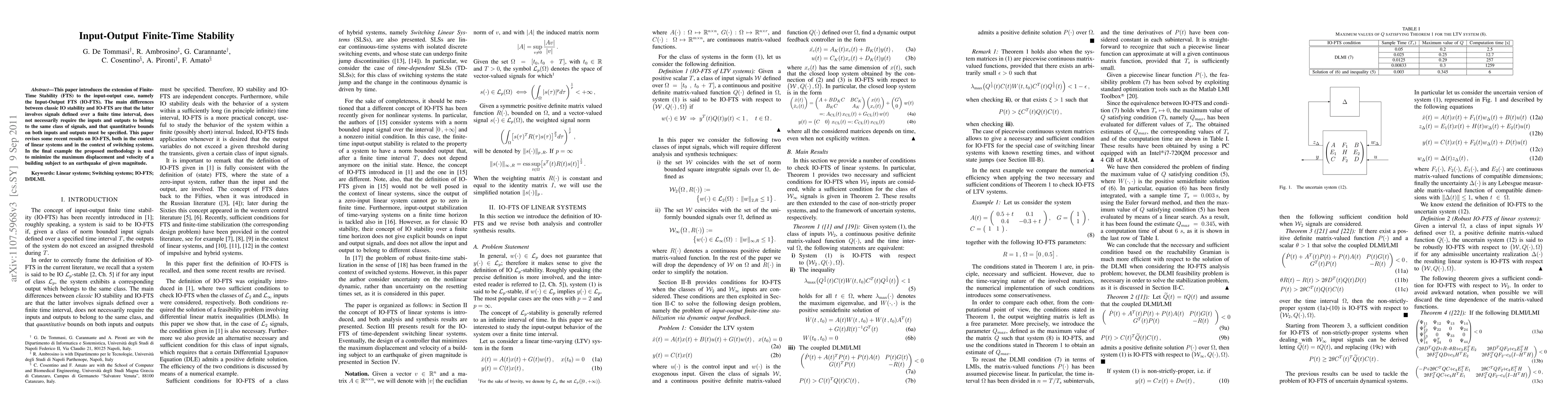 Researchers introduce Input-Output Finite-Time Stability (IO-FTS), extending Finite-Time Stability to input-output systems with finite-time signals and flexible signal classes, enabling quantitative bounds on inputs and outputs.