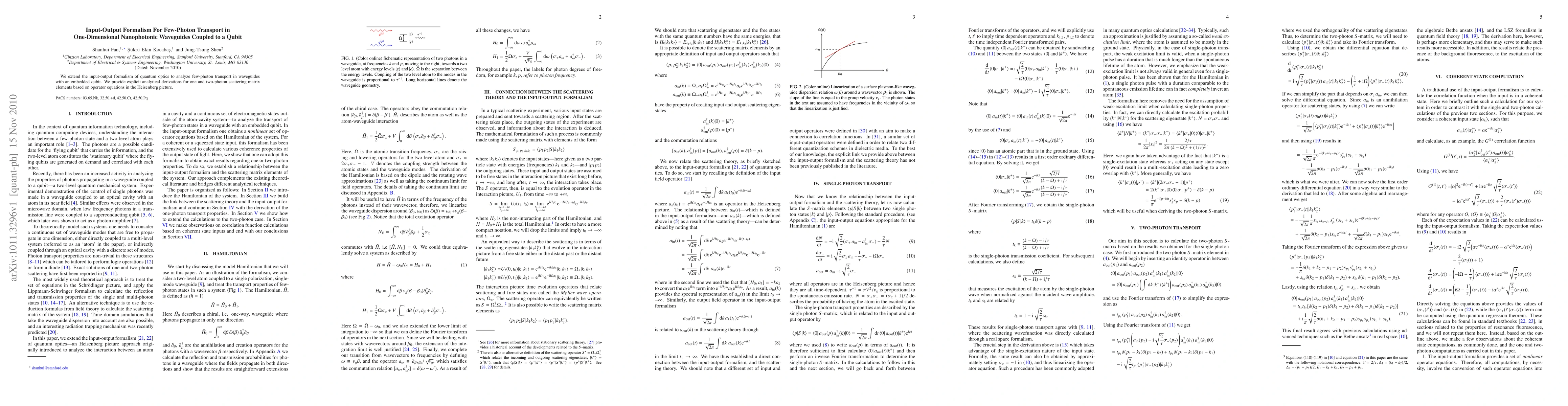This paper extends the input-output formalism of quantum optics to analyze few-photon transport in one-dimensional nanophotonic waveguides coupled to a qubit, providing explicit analytical derivations for one and two-photon scattering matrix elements in the Heisenberg picture.
