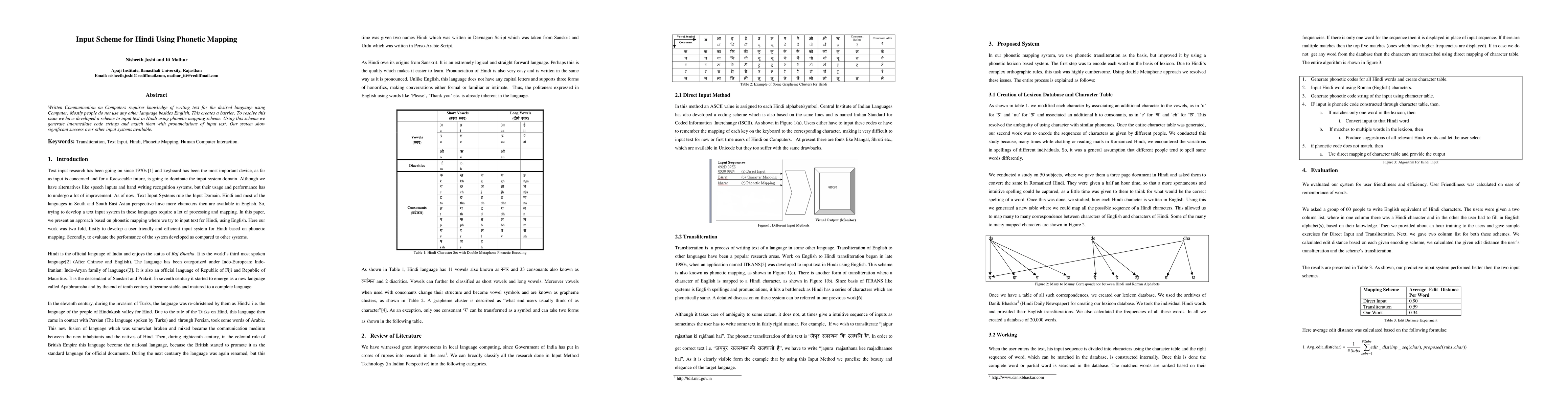 A new input scheme for writing in Hindi on computers uses phonetic mapping to generate intermediate code strings that match the pronunciation of user input, achieving significant success over existing input systems.