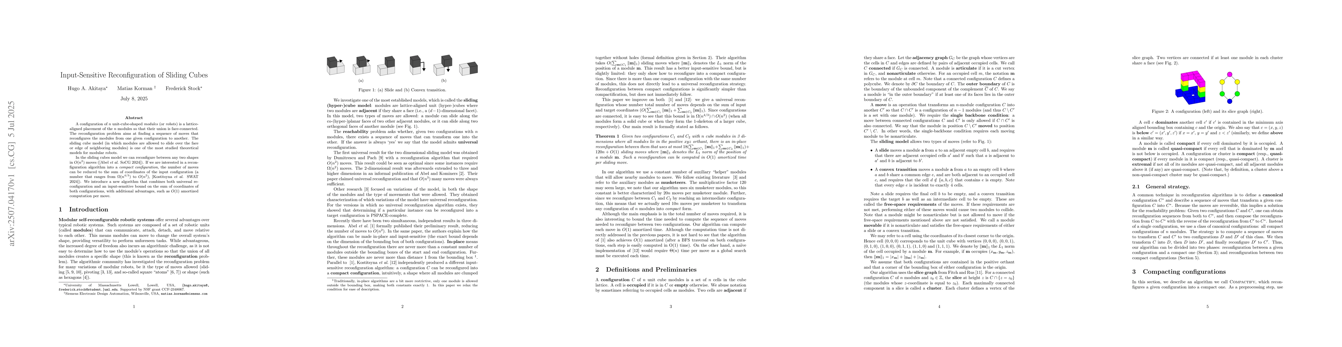 This research introduces an efficient algorithm for reconfiguring n unit-cube modules (sliding cubes) between configurations, reducing move count to the sum of input configuration coordinates. The method offers O(1) amortized computation per move, outperforming previous solutions.