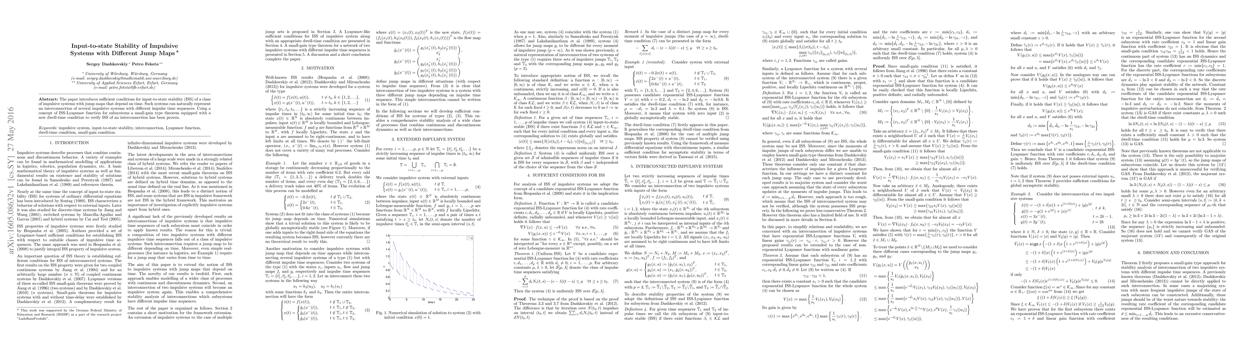 This paper establishes sufficient conditions for the input-to-state stability (ISS) of impulsive systems with time-dependent jump maps. It introduces a new small-gain theorem with a dwell-time condition to verify ISS for interconnected impulsive systems.