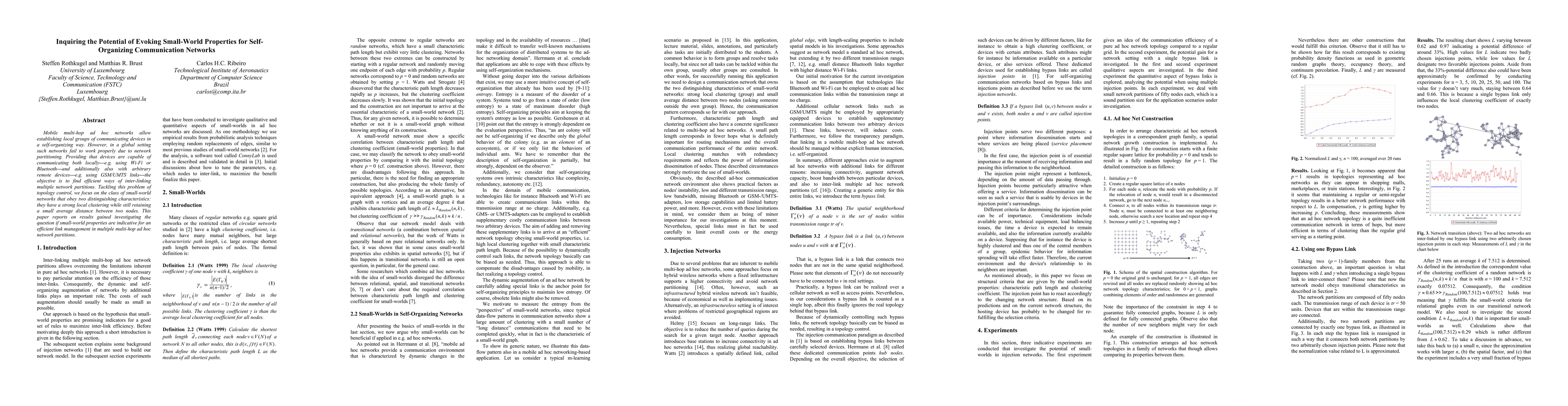Mobile multi-hop ad hoc networks allow establishing local groups of communicating devices in a self-organizing way. However, in a global setting such networks fail to work properly due to network partitioning. Providing that devices are capable of communicating both locally-e.g. using Wi-Fi or Bluetooth-and additionally also with arbitrary remote devices-e.g. using GSM/UMTS links-the objective is to find efficient ways of inter-linking multiple network partitions. Tackling this problem of topology control, we focus on the class of small-world networks that obey two distinguishing characteristics: they have a strong local clustering while still retaining a small average distance between two nodes. This paper reports on results gained investigating the question if small-world properties are indicative for an efficient link management in multiple multi-hop ad hoc network partitions.