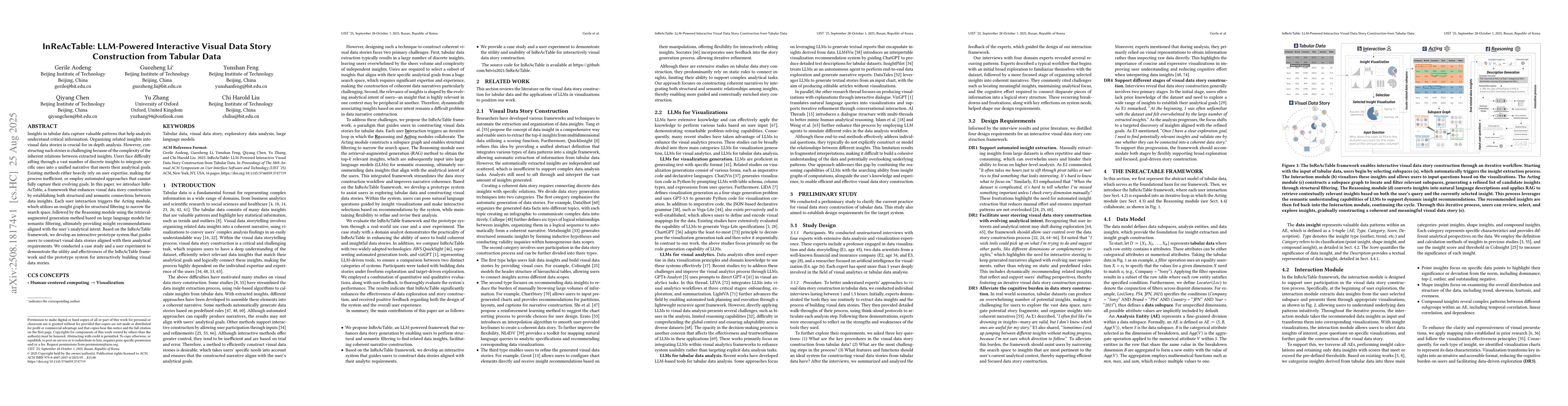 Insights in tabular data capture valuable patterns that help analysts understand critical information. Organizing related insights into visual data stories is crucial for in-depth analysis. However, constructing such stories is challenging because of the complexity of the inherent relations between extracted insights. Users face difficulty sifting through a vast number of discrete insights to integrate specific ones into a unified narrative that meets their analytical goals. Existing methods either heavily rely on user expertise, making the process inefficient, or employ automated approaches that cannot fully capture their evolving goals. In this paper, we introduce InReAcTable, a framework that enhances visual data story construction by establishing both structural and semantic connections between data insights. Each user interaction triggers the Acting module, which utilizes an insight graph for structural filtering to narrow the search space, followed by the Reasoning module using the retrieval-augmented generation method based on large language models for semantic filtering, ultimately providing insight recommendations aligned with the user's analytical intent. Based on the InReAcTable framework, we develop an interactive prototype system that guides users to construct visual data stories aligned with their analytical requirements. We conducted a case study and a user experiment to demonstrate the utility and effectiveness of the InReAcTable framework and the prototype system for interactively building visual data stories.