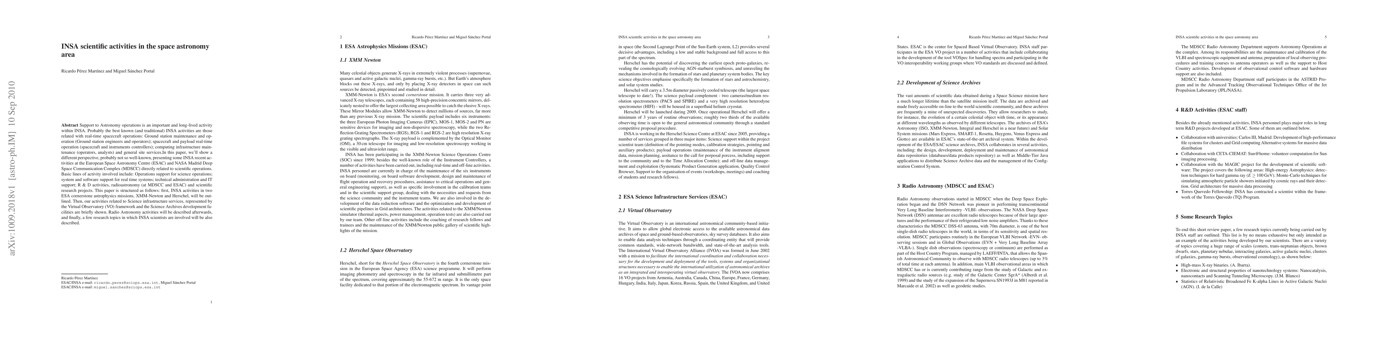 This paper outlines INSA's diverse scientific activities in space astronomy, focusing on support for science operations, system and software support, and R&D projects including radioastronomy. It highlights contributions to ESA's XMM-Newton and Herschel missions, the Virtual Observatory framework, and scientific research projects.