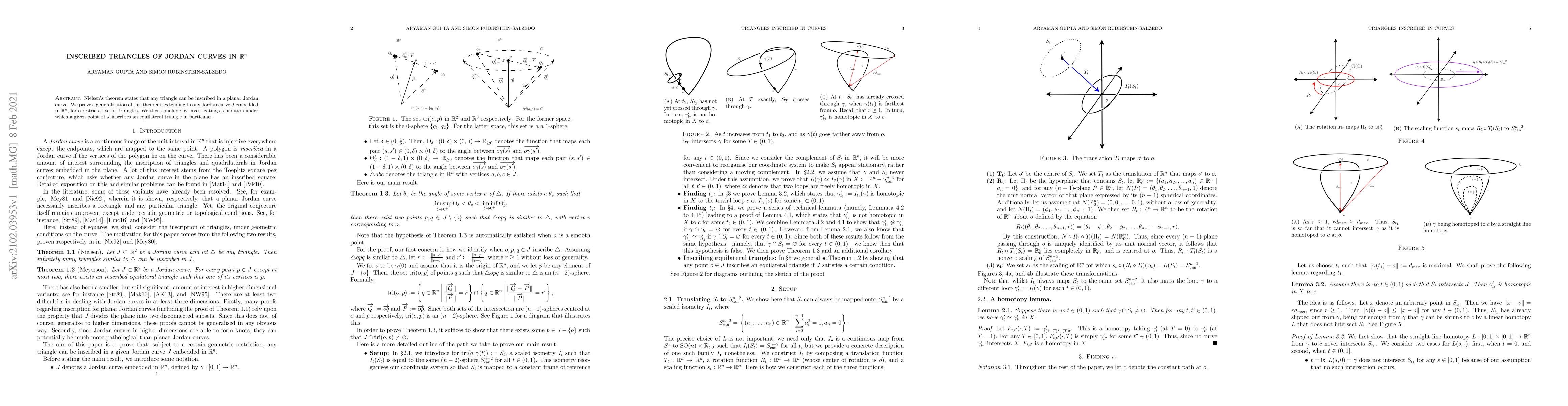 This paper generalizes Nielsen's theorem to Jordan curves in $\mathbb{R}^{n}$, proving that certain triangles can be inscribed in any such curve. It also explores conditions under which a point on the curve can inscribe an equilateral triangle.