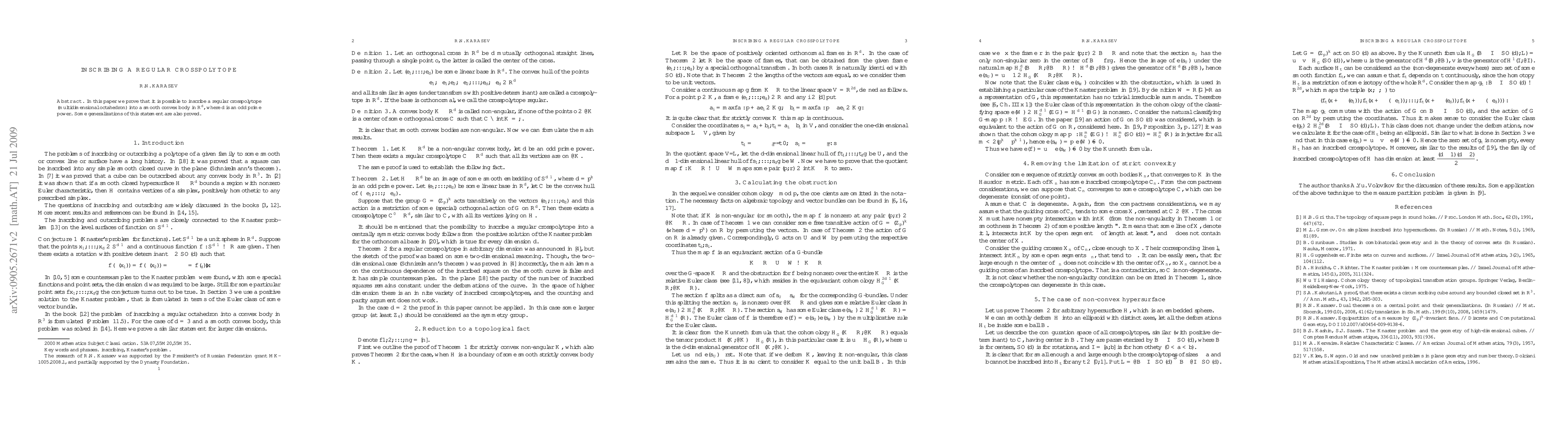 In this paper we prove that it is possible to inscribe a regular crosspolytope (multidimensional octahedron) into a smooth convex body in $\mathbb R^d$, where $d$ is an odd prime power. Some generalizations of this statement are also proved.