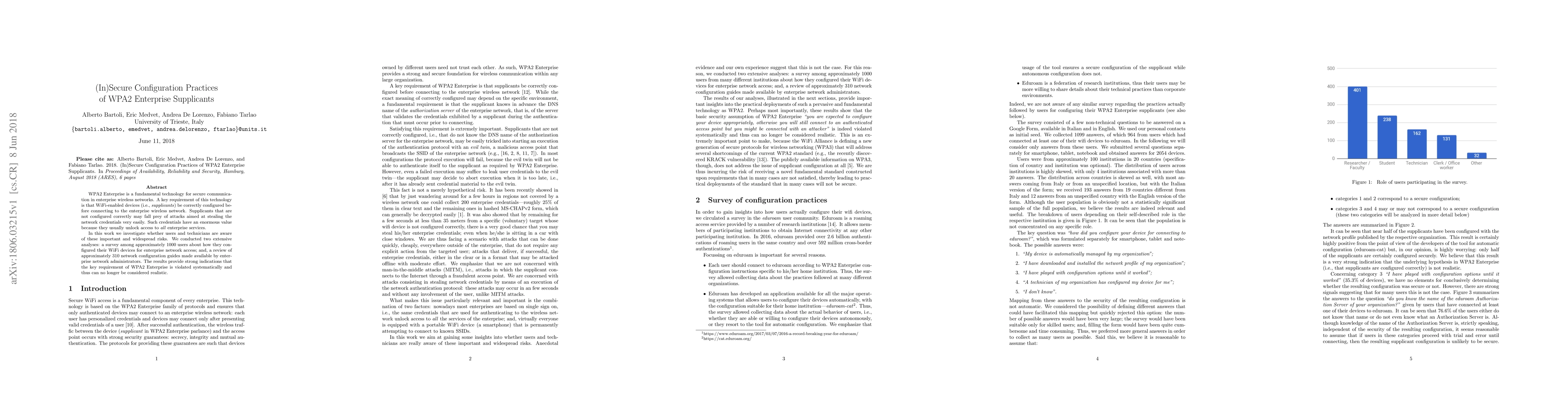 A study found that most users and technicians fail to correctly configure their WiFi devices for enterprise network access due to WPA2 Enterprise security risks. The results highlight a systemic violation of the key requirement of this technology, making it unrealistic to rely on users and technicians to secure networks.
