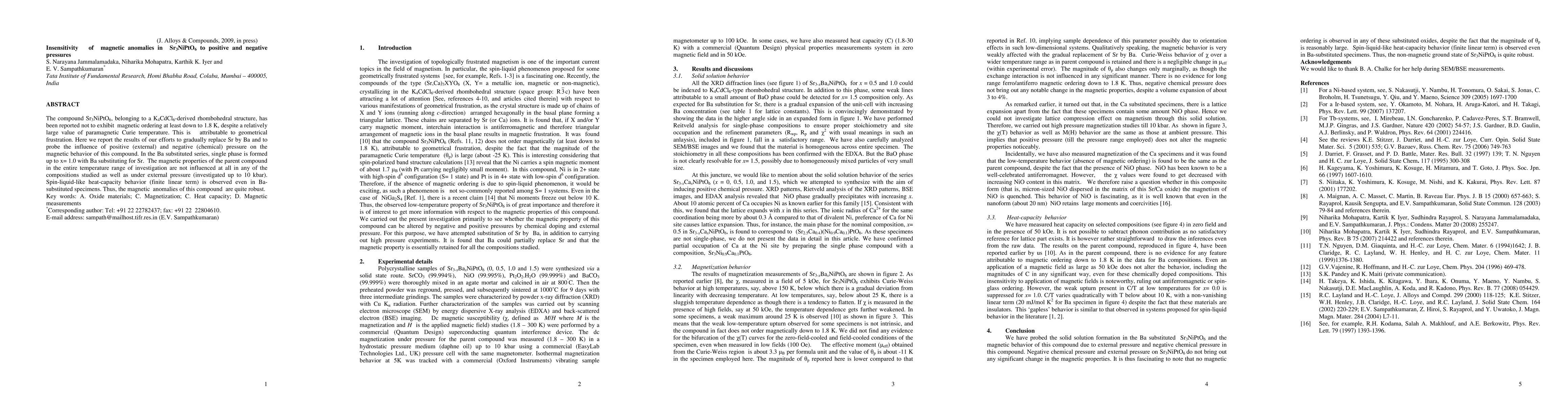 The study reveals that Sr3NiPtO6, a geometrically frustrated compound, remains non-magnetic down to 1.8 K despite pressure applications, showing no change in magnetic properties even with Sr substitution by Ba or under external pressures up to 10 kbar. The spin-liquid-like behavior remains unaffected.