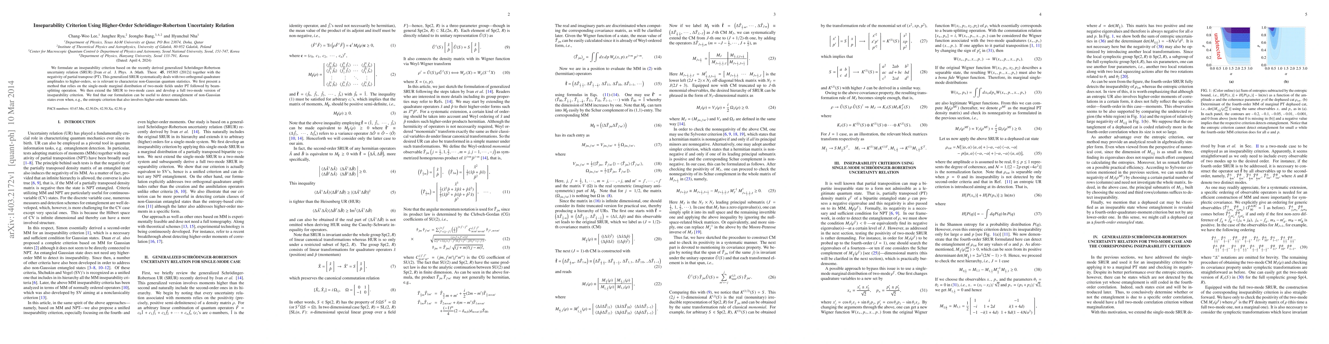 This paper formulates an inseparability criterion for non-Gaussian quantum states using the generalized Schrödinger-Robertson uncertainty relation and the negativity of partial transpose. It extends the criterion to two-mode systems and demonstrates its effectiveness in detecting entanglement beyond standard entropic criteria.