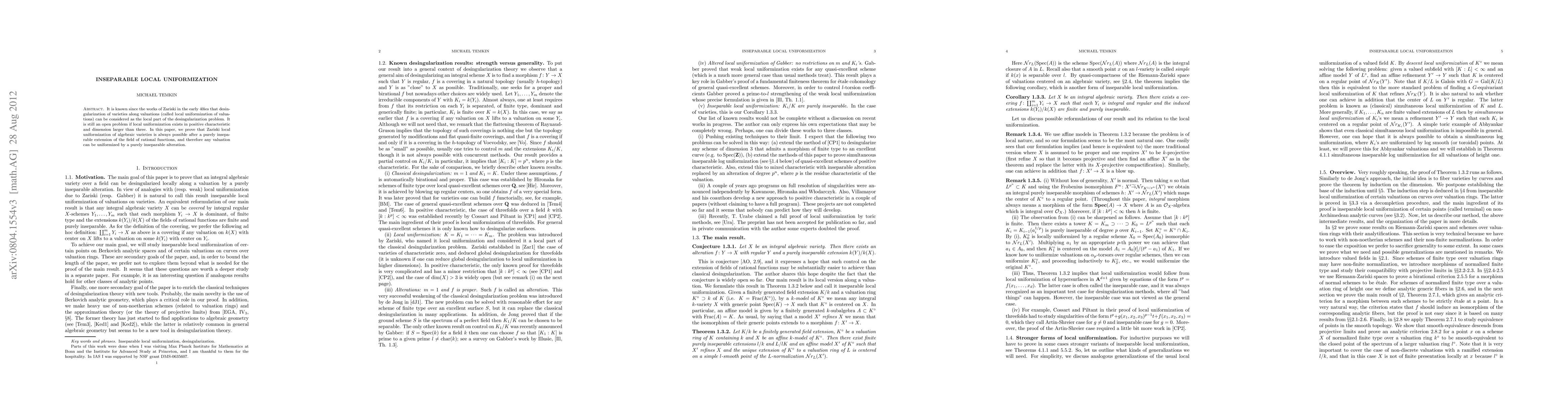 This paper proves that Zariski local uniformization of algebraic varieties is achievable through a purely inseparable extension of the field of rational functions, demonstrating that any valuation can be uniformized by such an alteration. This resolves the longstanding open problem regarding the existence of local uniformization in positive characteristic and dimensions larger than three.