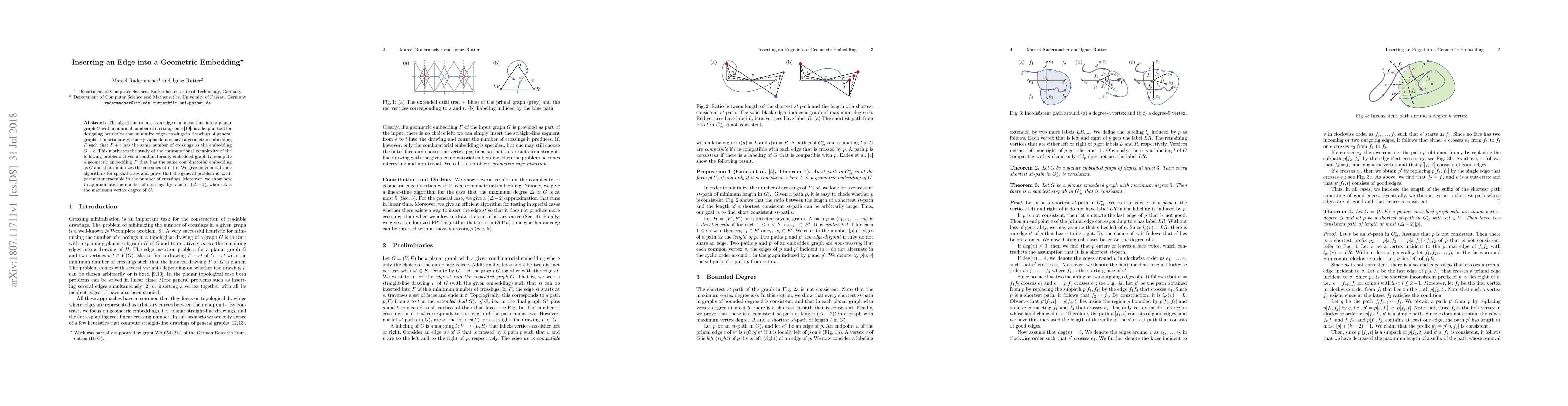 The paper presents polynomial-time algorithms for special cases of a graph embedding problem and proves that the general case is fixed-parameter tractable in terms of crossings, allowing for efficient minimization of edge crossings.