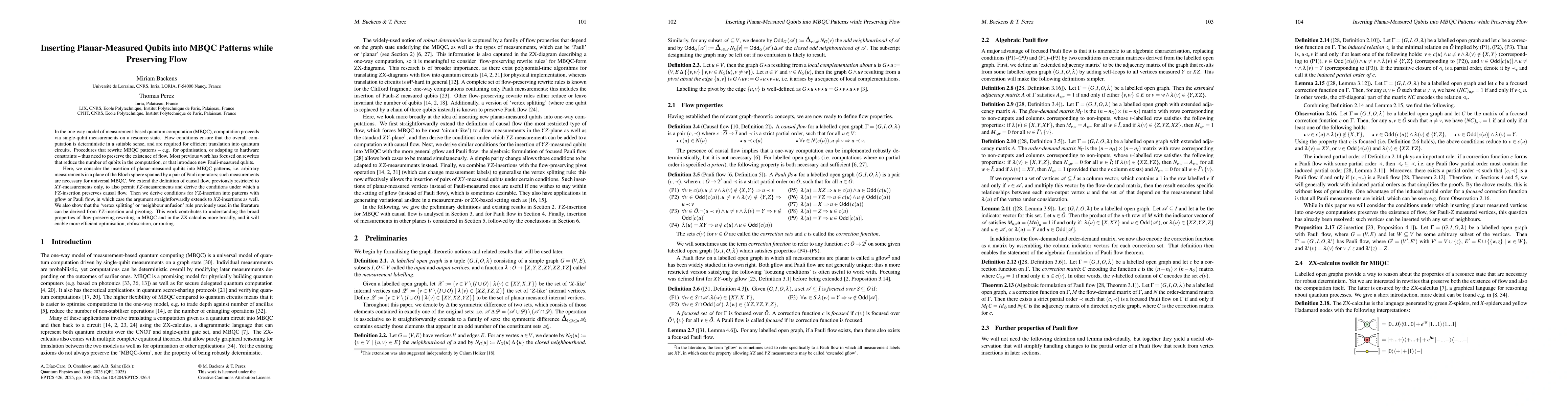 The paper introduces extended conditions for causal flow, enabling the insertion of planar-measured qubits into MBQC patterns while preserving flow, and demonstrates the equivalence of vertex splitting to YZ-insertion and pivoting.