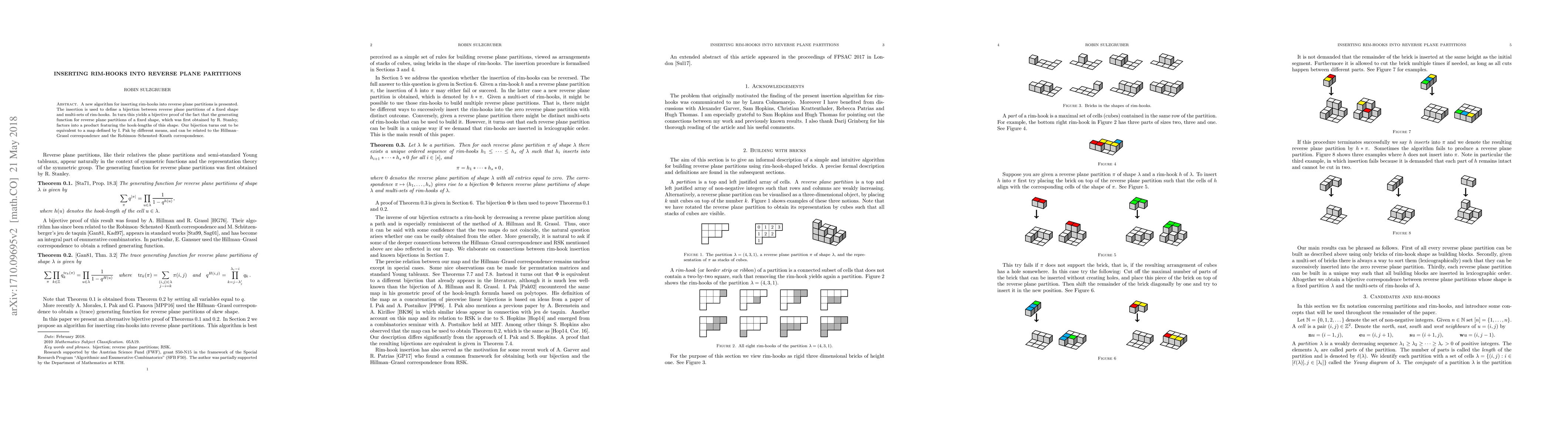 This paper introduces a new algorithm for inserting rim-hooks into reverse plane partitions, establishing a bijection between these partitions and multi-sets of rim-hooks. This bijection provides a new proof for the factorization of the generating function for reverse plane partitions, linking it to the hook-lengths of the shape.