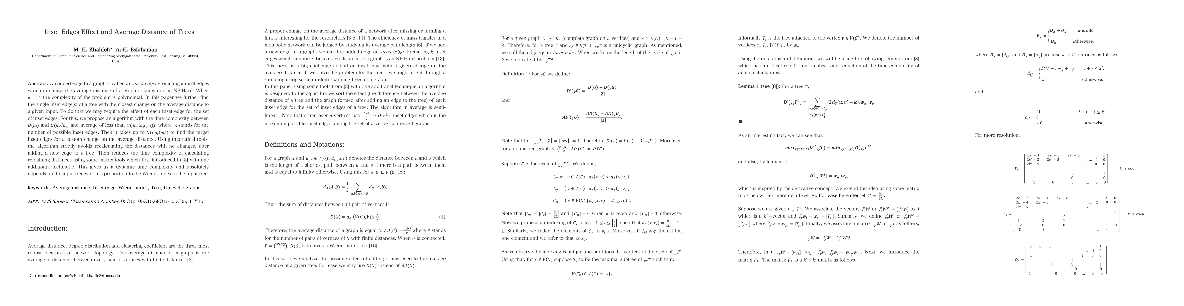 An added edge to a graph is called an inset edge. Predicting k inset edges which minimize the average distance of a graph is known to be NP-Hard. When k = 1 the complexity of the problem is polynomial. In this paper, we further find the single inset edge(s) of a tree with the closest change on the average distance to a given input. To do that we may require the effect of each inset edge for the set of inset edges. For this, we propose an algorithm with the time complexity between O(m) and O(m/m) and an average of less than O( m.log(m)), where m stands for the number of possible inset edges. Then it takes up to O(log(m)) to find the target inset edges for a custom change on the average distance. Using theoretical tools, the algorithm strictly avoids recalculating the distances with no changes, after adding a new edge to a tree. Then reduces the time complexity of calculating remaining distances using some matrix tools which first introduced in [8] with one additional technique. This gives us a dynamic time complexity and absolutely depends on the input tree which is proportion to the Wiener index of the input tree.