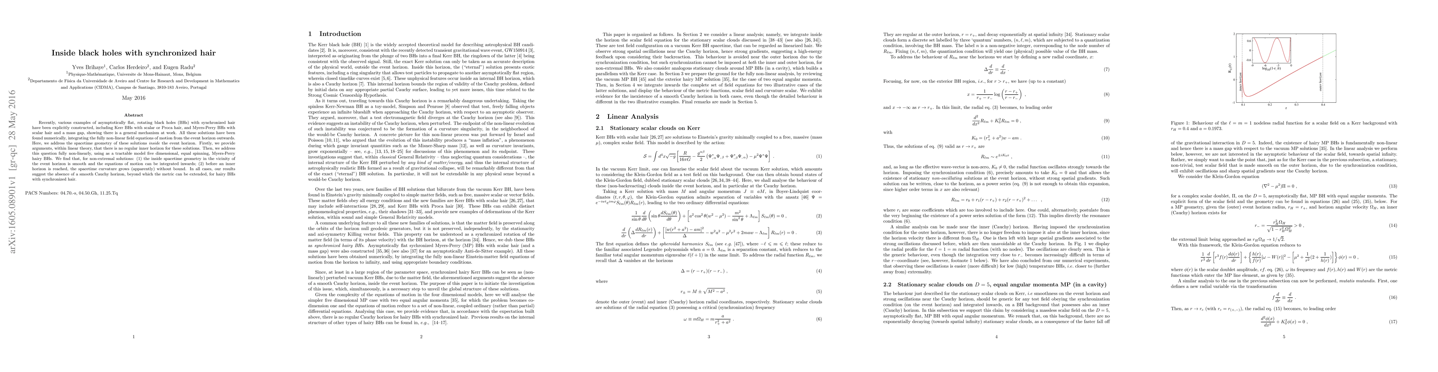 This paper investigates black holes with synchronized hair, finding that their spacetime geometry is smooth near the event horizon but grows without bound before an inner horizon is reached, suggesting no regular Cauchy horizon exists.