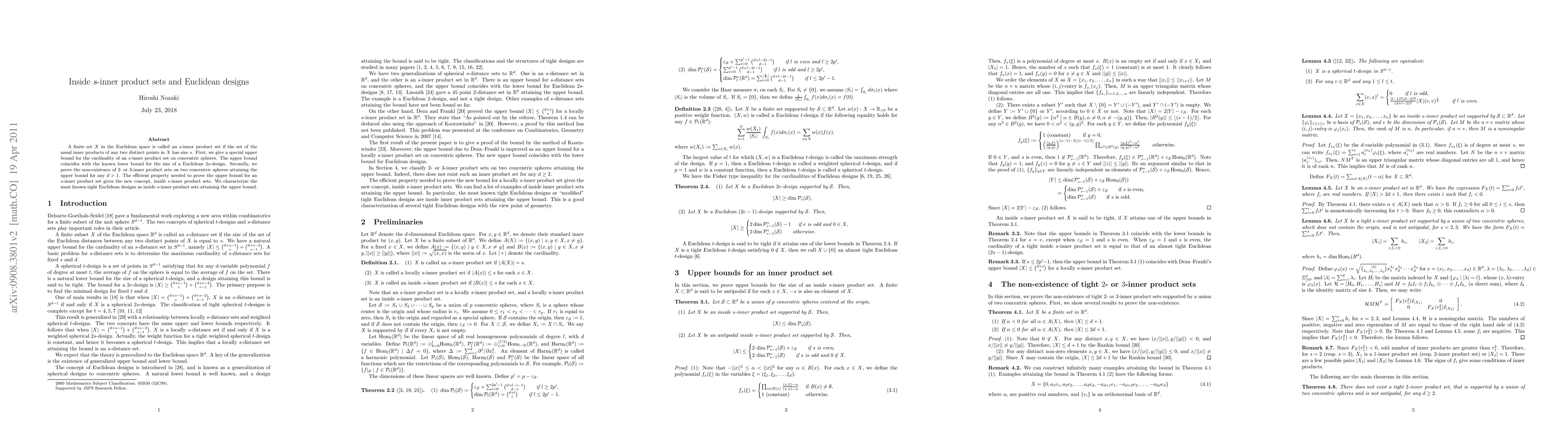 Researchers found that certain sets of points in space have a limited number of unique inner products, and also proved some designs cannot exist under certain conditions.