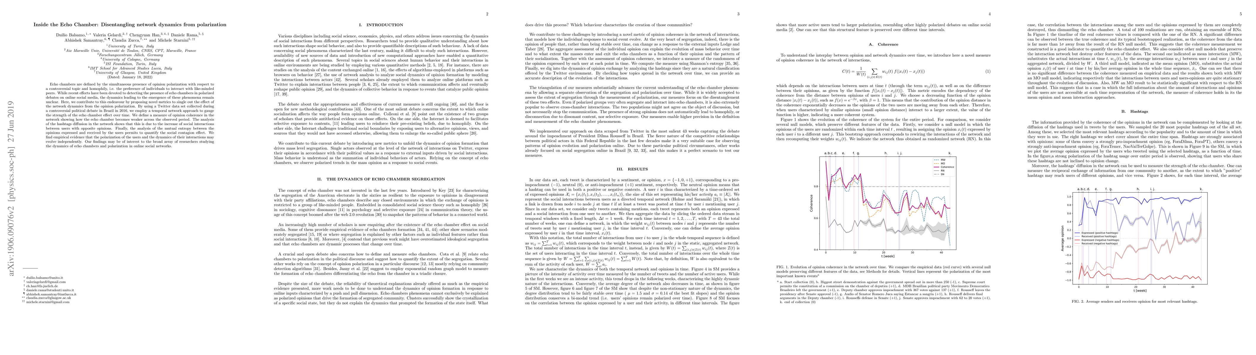 Echo chambers are defined by the simultaneous presence of opinion polarization with respect to a controversial topic and homophily, i.e. the preference of individuals to interact with like-minded peers. While recent efforts have been devoted to detecting the presence of echo chambers in polarized debates on online social media, the dynamics leading to the emergence of these phenomena remain unclear. Here, we contribute to this endeavor by proposing novel metrics to single out the effect of the network dynamics from the opinion polarization. By using a Twitter data set collected during a controversial political debate in Brazil in 2016, we employ a temporal network approach to gauge the strength of the echo chamber effect over time. We define a measure of opinion coherence in the network showing how the echo chamber becomes weaker across the observed period. The analysis of the hashtags diffusion in the network shows that this is due to the increase of social interactions between users with opposite opinions. Finally, the analysis of the mutual entropy between the opinions expressed and received by the users permits to quantify the social contagion effect. We find empirical evidence that the polarization of the users and the dynamics of their interactions may evolve independently. Our findings may be of interest to the broad array of researchers studying the dynamics of echo chambers and polarization in online social networks.