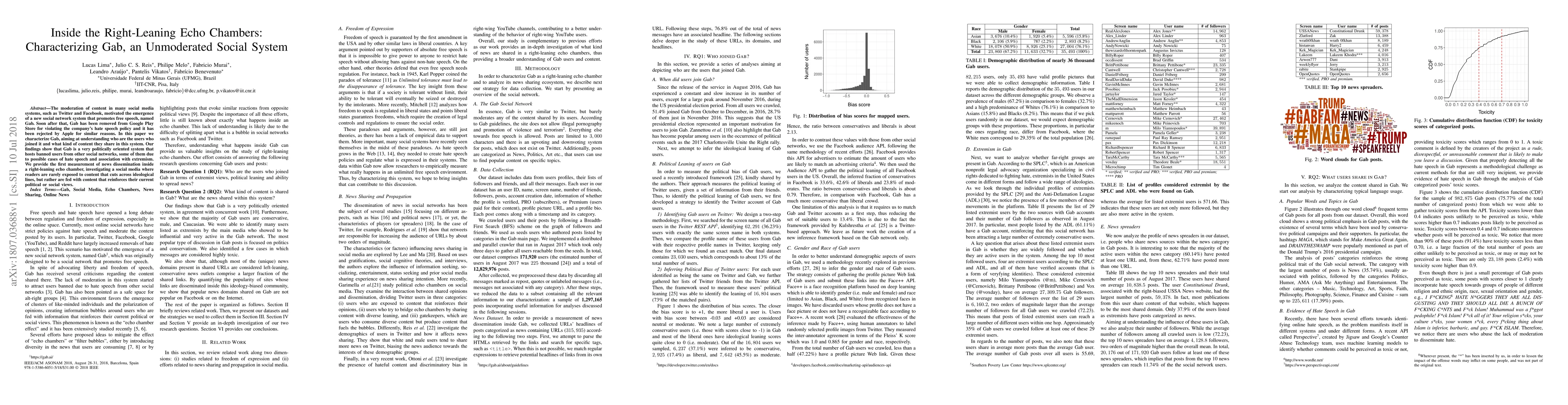 This paper examines Gab, a social network promoting free speech, finding it to be a politically charged platform hosting users banned from mainstream networks for potential hate speech and extremism. The study measures news dissemination within a right-leaning echo chamber, revealing users are primarily exposed to content reinforcing their views rather than promoting diverse perspectives.