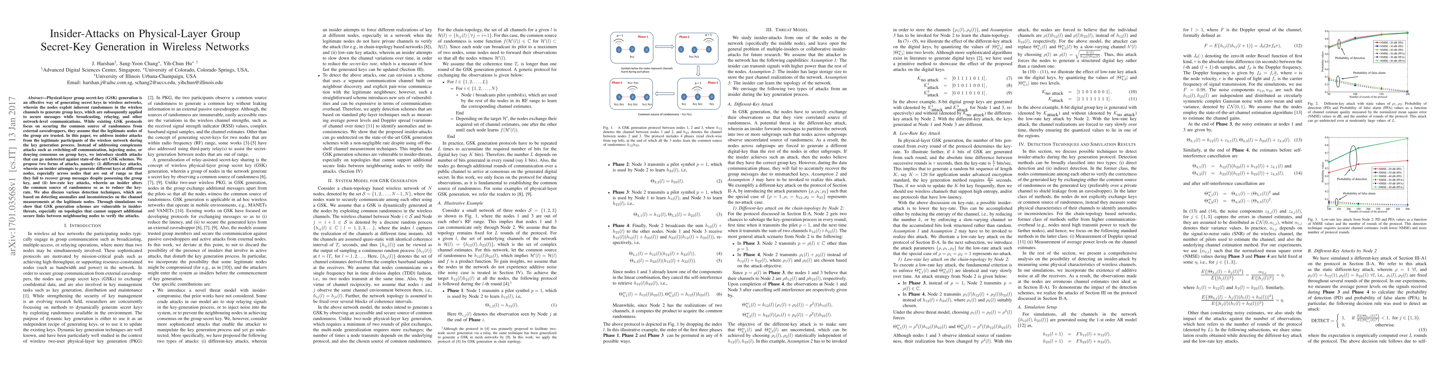 This paper investigates insider attacks during physical-layer group secret-key generation in wireless networks, focusing on stealthy attacks by legitimate participants. It proposes two attack forms: different-key and low-rate key attacks, and discusses detection techniques based on channel measurement anomalies. Simulation results reveal vulnerabilities in GSK schemes against insider threats.