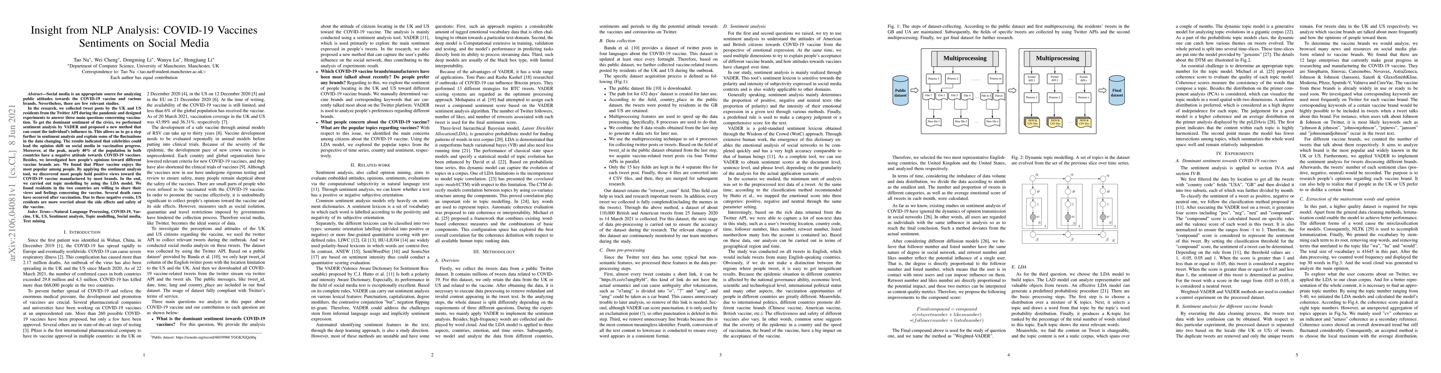 This study analyzes sentiments on COVID-19 vaccines in UK and US tweets using NLP techniques, revealing that nearly 40% of the population held negative views at the peak. The sentiment analysis found Pfizer to be the most popular vaccine brand, with celebrities influencing opinion shifts.