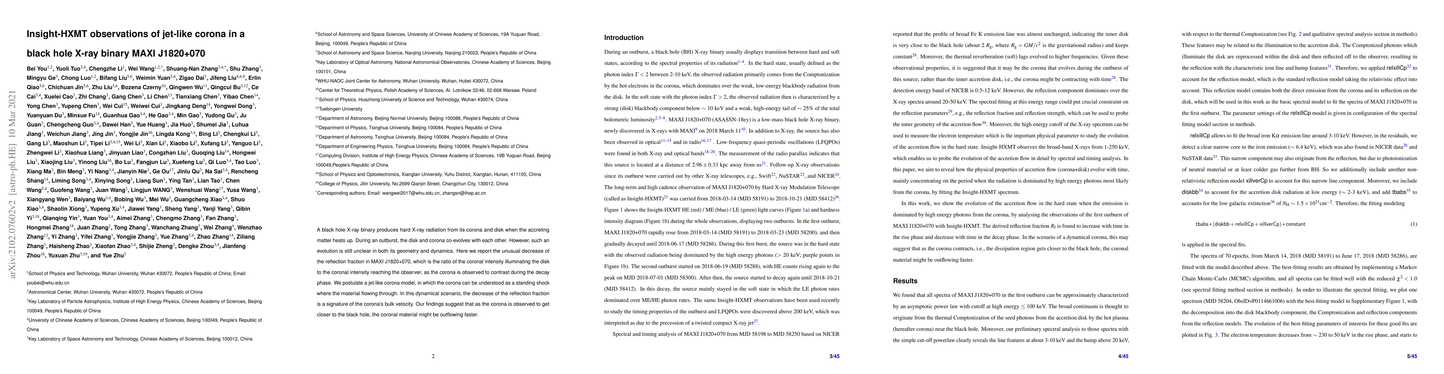 The MAXI J1820+070 black hole binary exhibited a unique decrease in reflection fraction during decay phase, suggesting a jet-like corona model where coronal material outflows faster as it approaches the black hole.