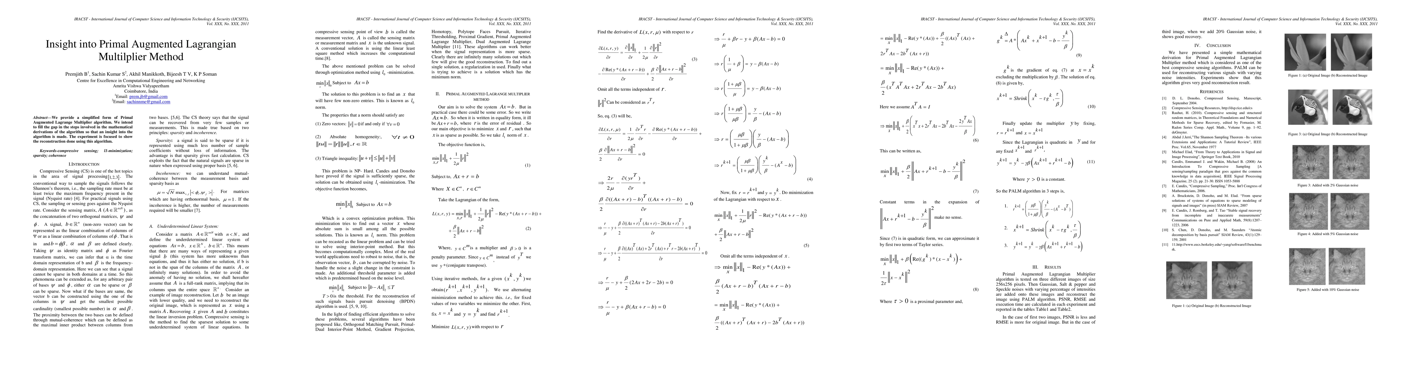 This paper presents a simplified version of the Primal Augmented Lagrange Multiplier (PALM) algorithm, aiming to clarify its mathematical derivations. The study demonstrates the algorithm's effectiveness through reconstruction experiments.